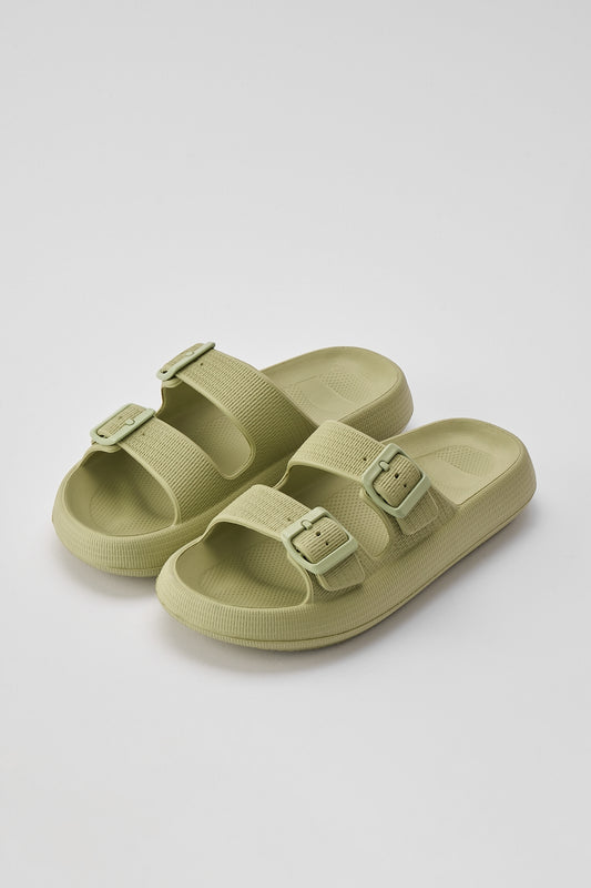Lily Yağlı Yeşil Çift Bant Eva Platform Günlük Yazlık Plaj Terliği