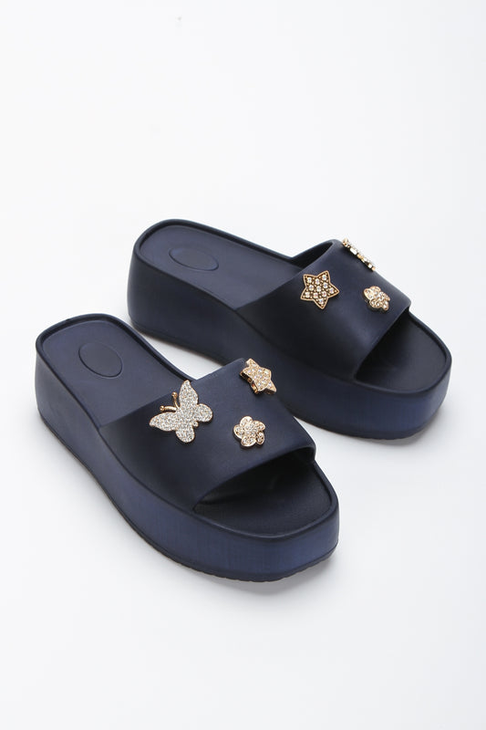 Simi lavivert taşlı Yüksek Taban Platform Eva Plaj Yazlık - Günlük Terlik
