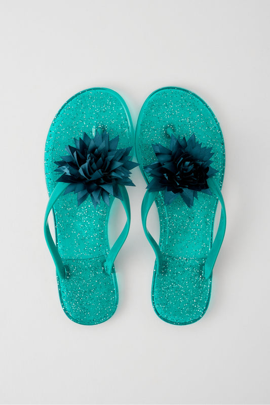 Jade Simli Yeşil Çiçekli Jel Günlük Plaj Yazlık Terlik
