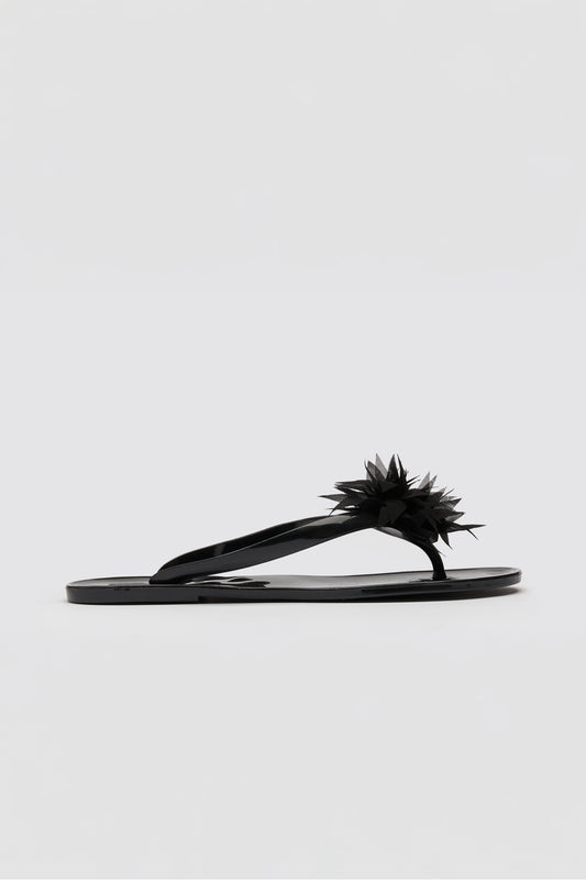 Jade Siyah Çiçekli Jel Günlük Plaj Yazlık Terlik