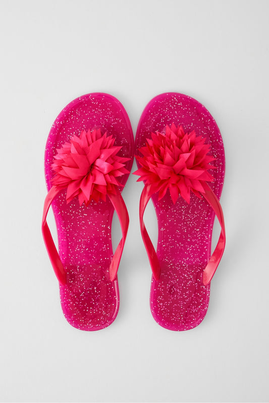Jade Simli Fuşya Çiçekli Jel Günlük Plaj Yazlık Terlik