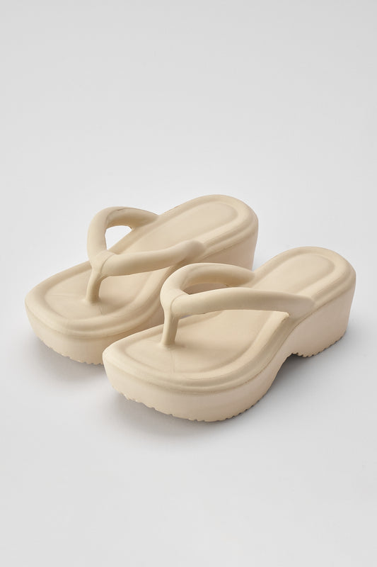 Lily Bej Çift Bant Eva Platfrom Günlük Yazlık Plaj Terliği