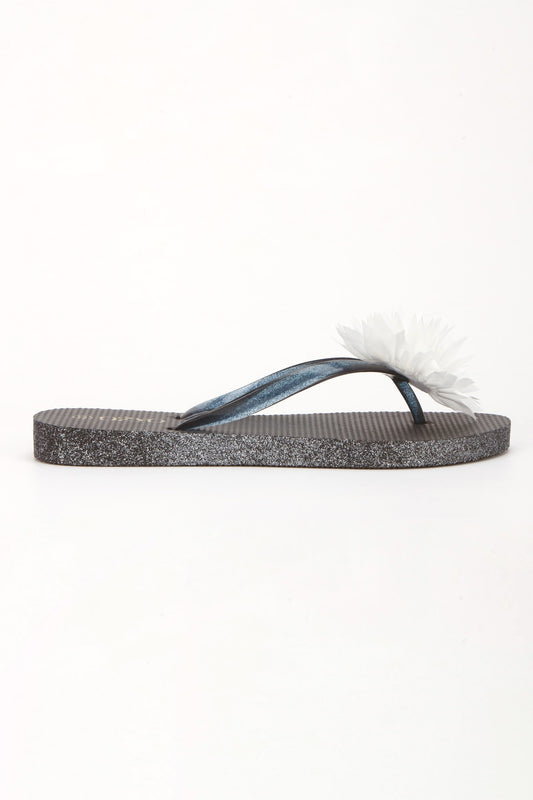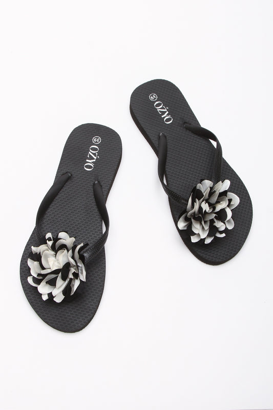Havana simli siyahh çiçekli parmak arası bayan terlik