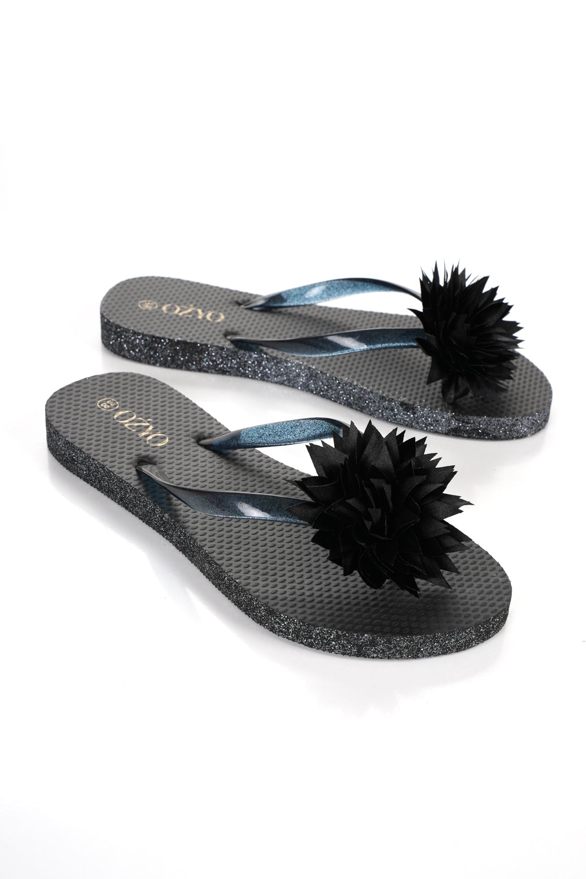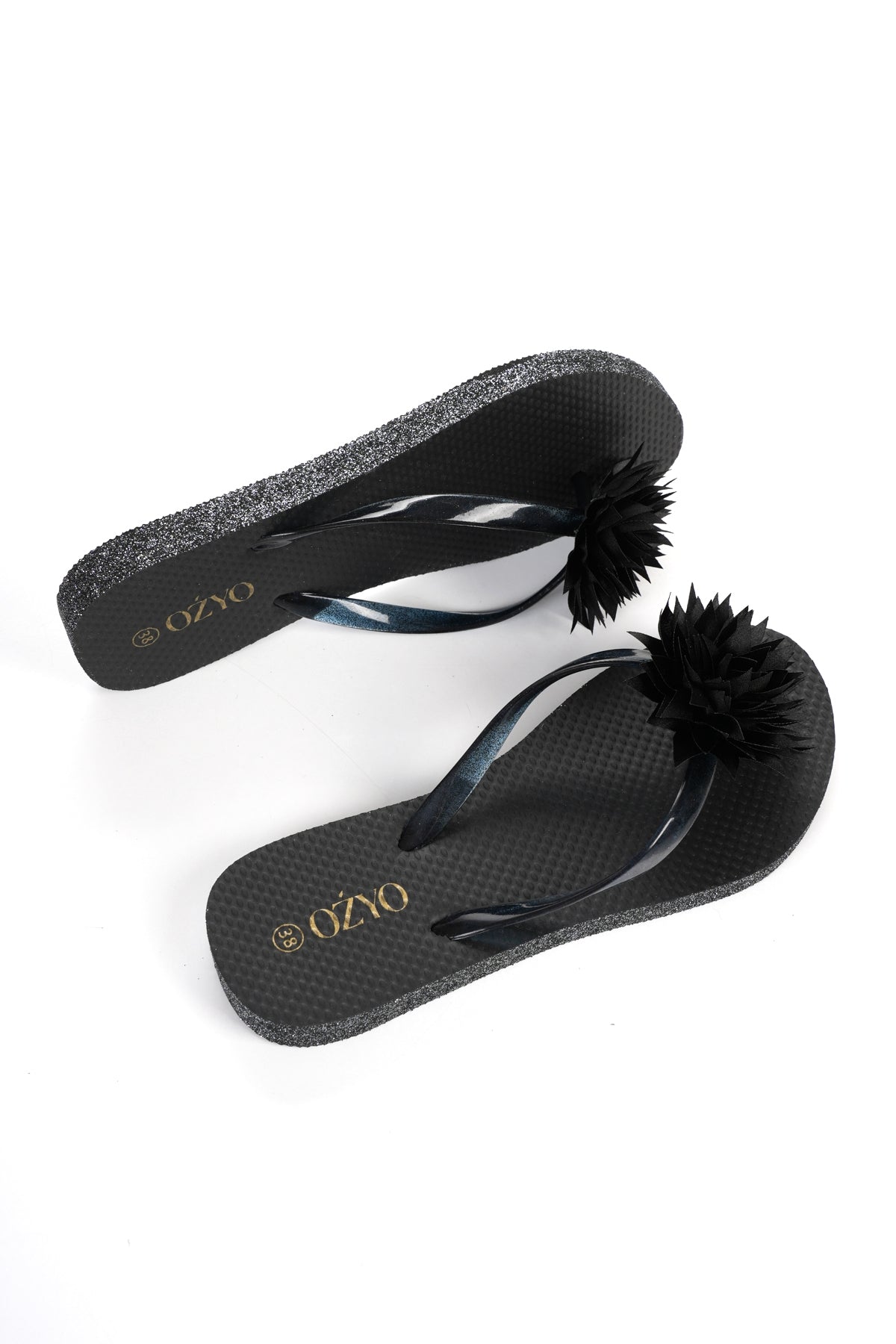 Havana simli siyahh çiçekli parmak arası bayan terlik