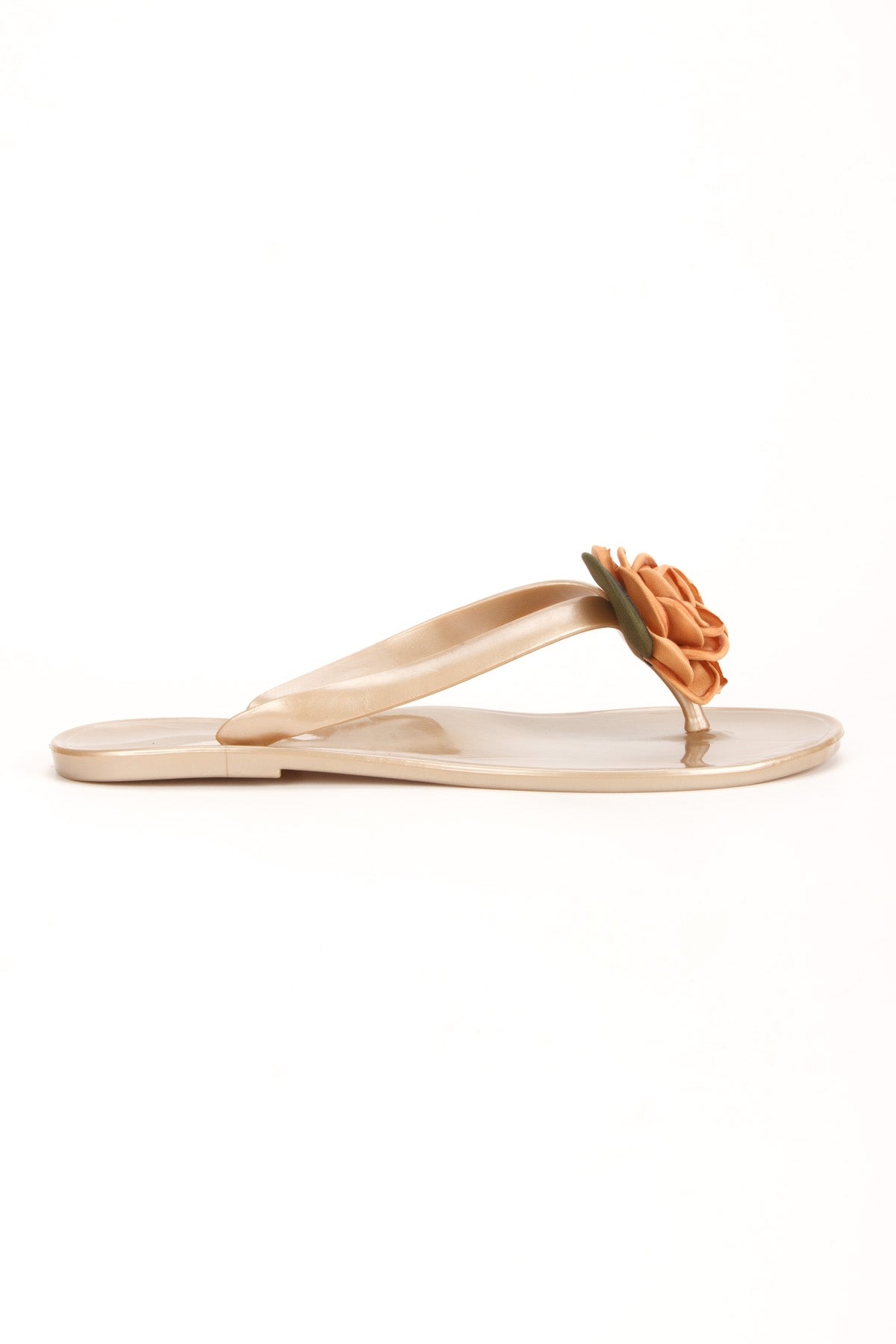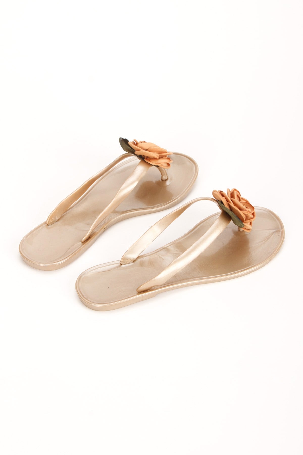 Jade koyu bej çiçekli parmak arası terlik